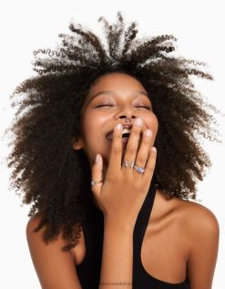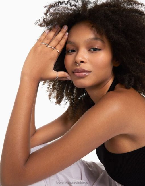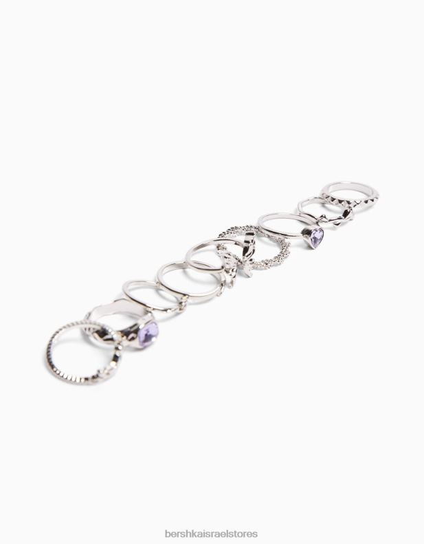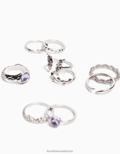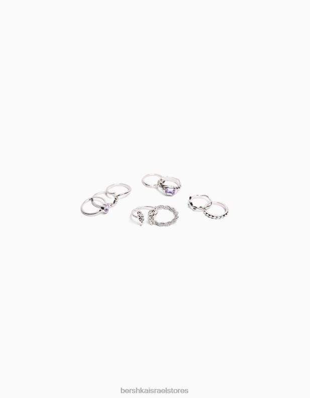 נשים סט של 9 טבעות חלקן עם אבנים יקרות כסף 2L6JD2467 Bershka אביזרים