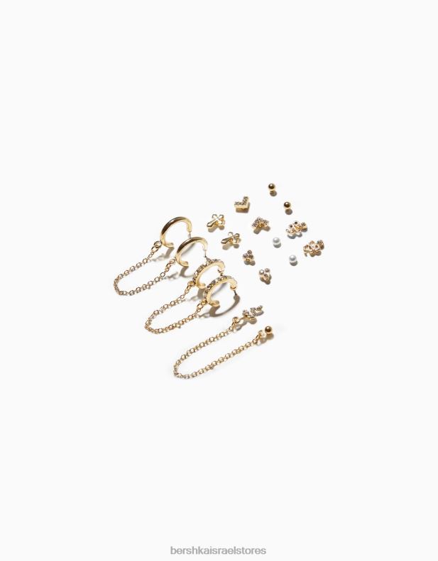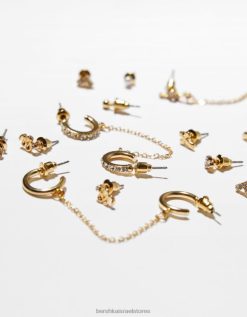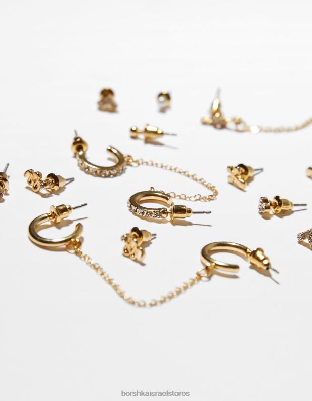 נשים סט של 9 עגילי נחש וצלב באפקט זהב זהב 2L6JD2478 Bershka אביזרים