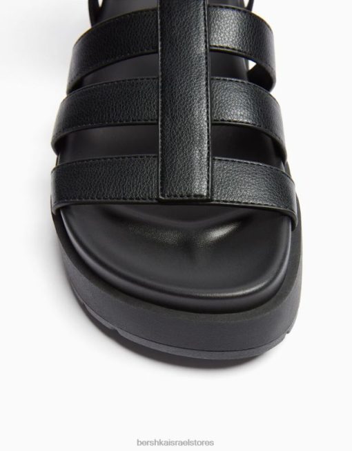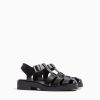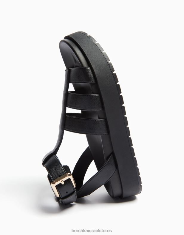 נשים סנדלי כלוב שטוחים שָׁחוֹר 2L6JD1894 Bershka הַנעָלָה
