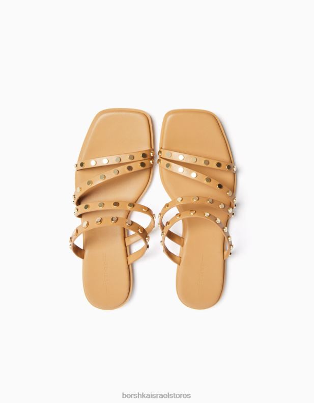 נשים סנדלי סליידר שטוחים משובצים חוֹל 2L6JD2236 Bershka הַנעָלָה