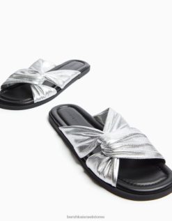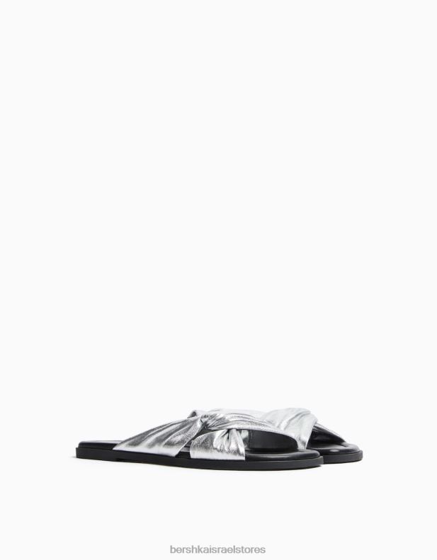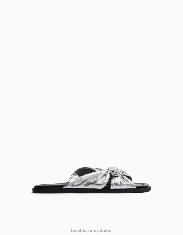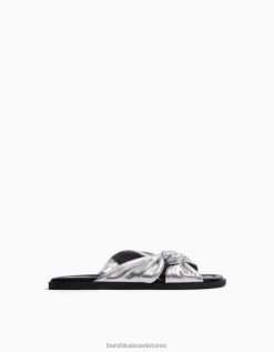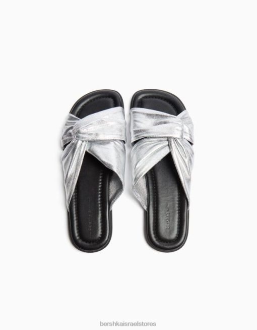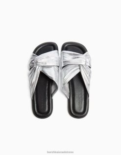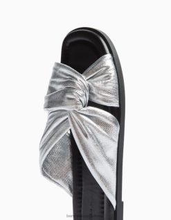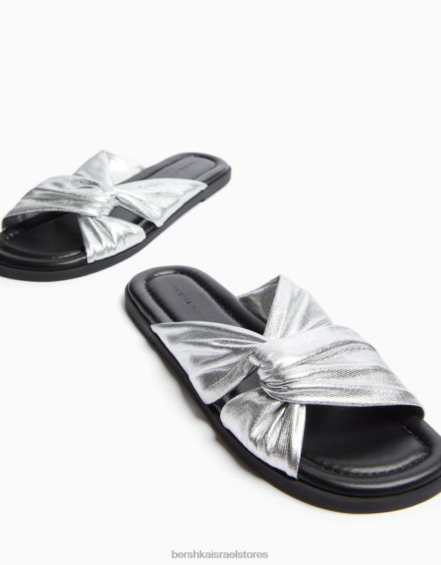 נשים סנדלי סליידר שטוחים עם פרטי קשר מתכתיים בִּלעָדִי 2L6JD2216 Bershka הַנעָלָה