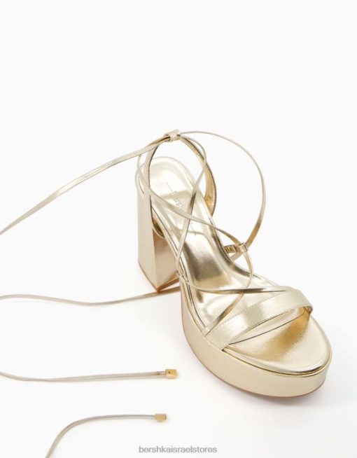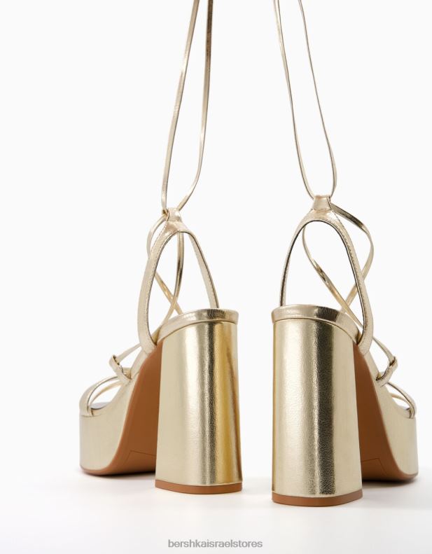 נשים סנדלי פלטפורמה מתכתיים קשורים עם עקב גבוה זהב 2L6JD2172 Bershka הַנעָלָה