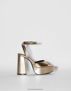 נשים סנדלי פלטפורמה עם עקב מטאלי זהב 2L6JD2184 Bershka הַנעָלָה