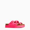 נשים סנדלי פלטפורמה שטוחים עם אבזמים ורוד פוקסיה 2L6JD2219 Bershka הַנעָלָה