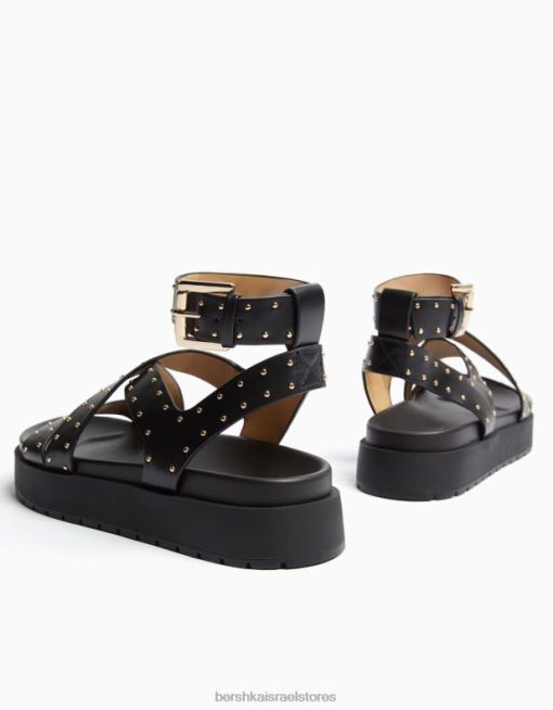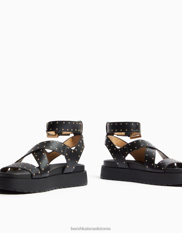 נשים סנדלי פלטפורמה שטוחים עם ניטים שָׁחוֹר 2L6JD2240 Bershka הַנעָלָה