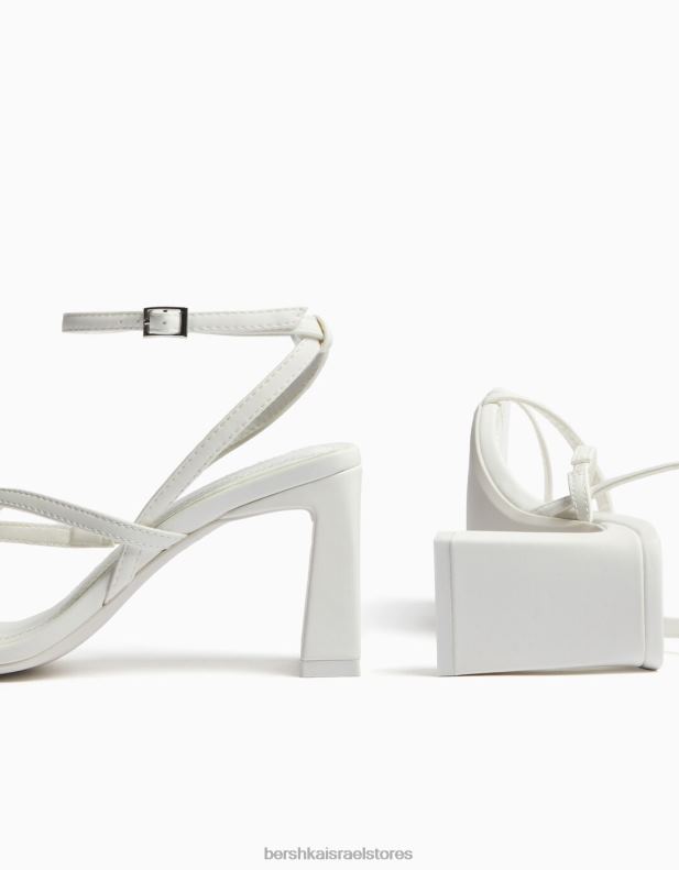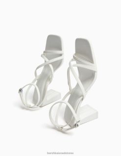 נשים סנדלי רצועות עקב גבוה עם רצועת קרסול לבן 2L6JD2161 Bershka הַנעָלָה
