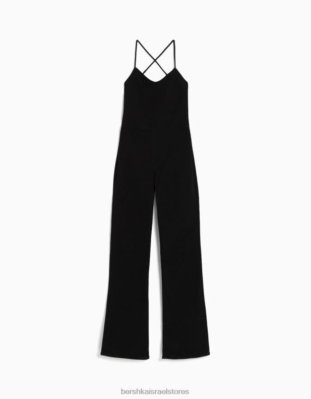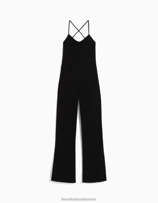 נשים סרבל ג’ינס אלסטי עם גב חתוך שָׁחוֹר 2L6JD141 Bershka הַלבָּשָׁה