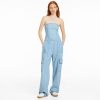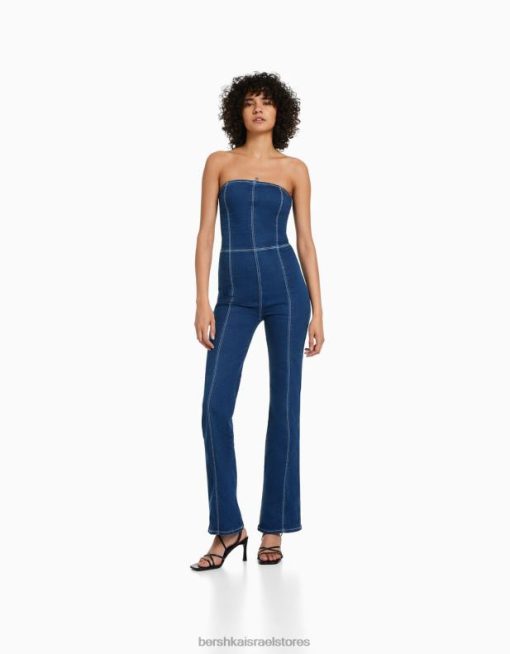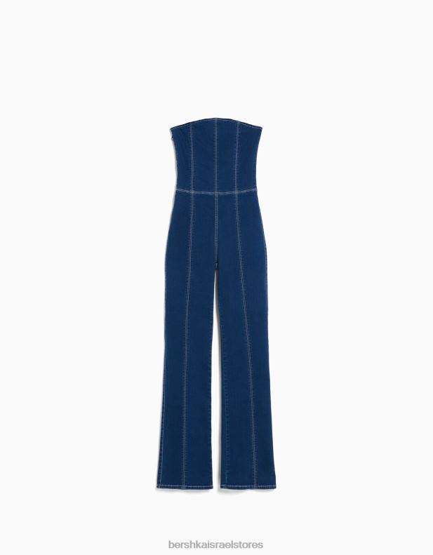 נשים סרבל ג’ינס עם כתפיים חשופות חיל הים 2L6JD1969 Bershka הַלבָּשָׁה