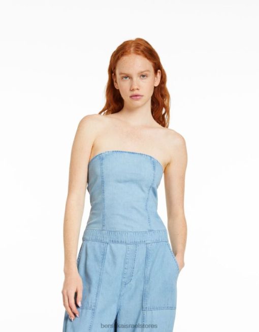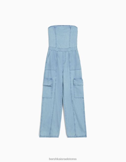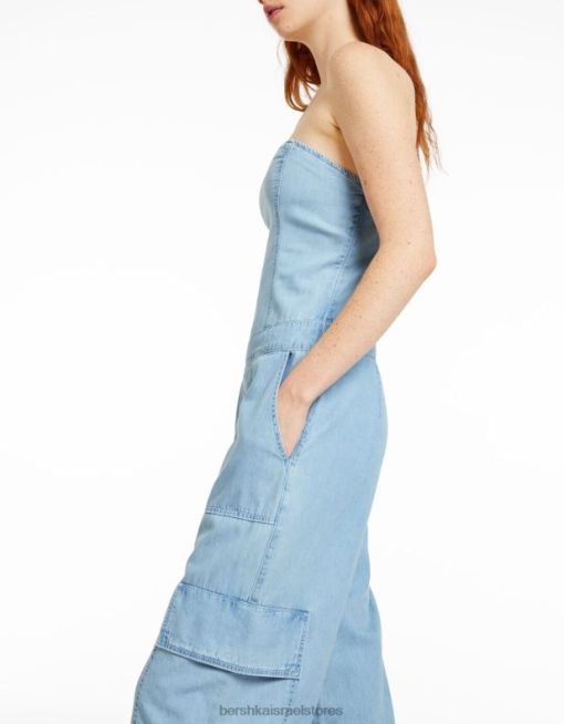 נשים סרבל ג’ינס קרגו בנדו כחול בהיר 2L6JD4076 Bershka הַלבָּשָׁה