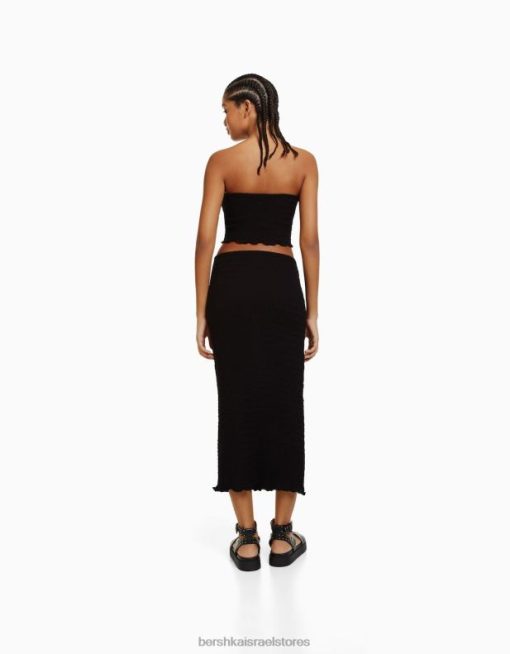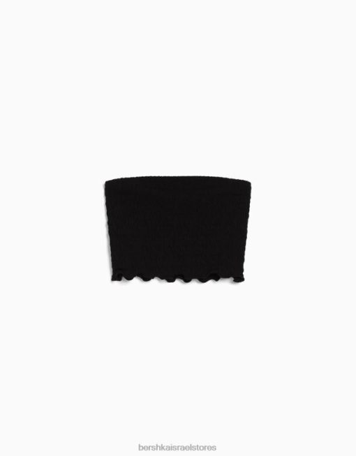 נשים עליונית בנדו סרוגת וופל שָׁחוֹר 2L6JD858 Bershka הַלבָּשָׁה