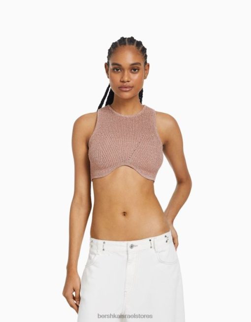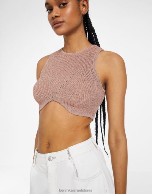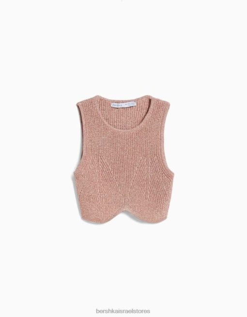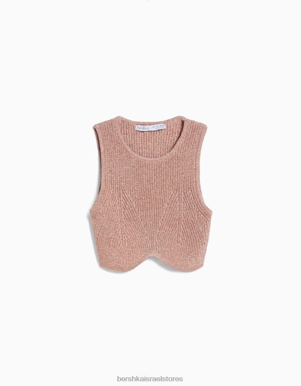 נשים עליונית סריג מתכתי ללא שרוולים וָרוֹד 2L6JD843 Bershka הַלבָּשָׁה
