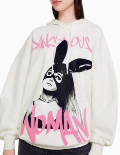 נשים קפוצ’ון בהדפס אריאנה גרנדה צבע קרם 2L6JD1209 Bershka הַלבָּשָׁה