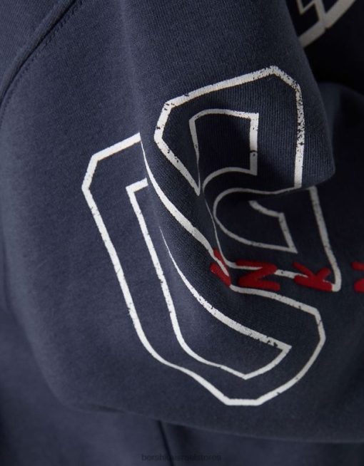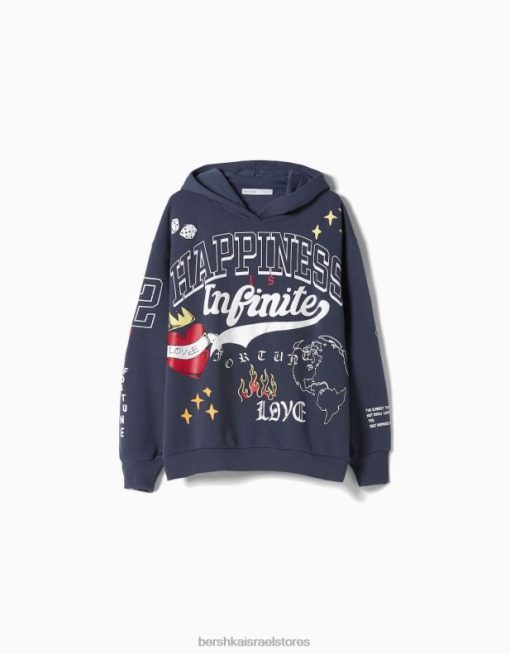 נשים קפוצ’ון מודפס כחול כהה 2L6JD1278 Bershka הַלבָּשָׁה