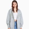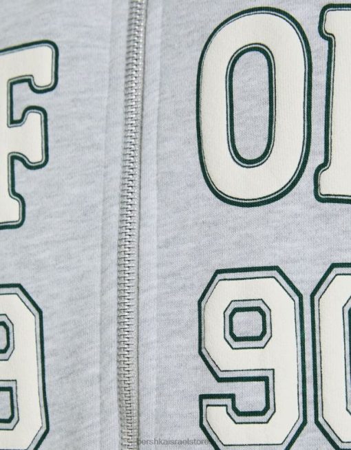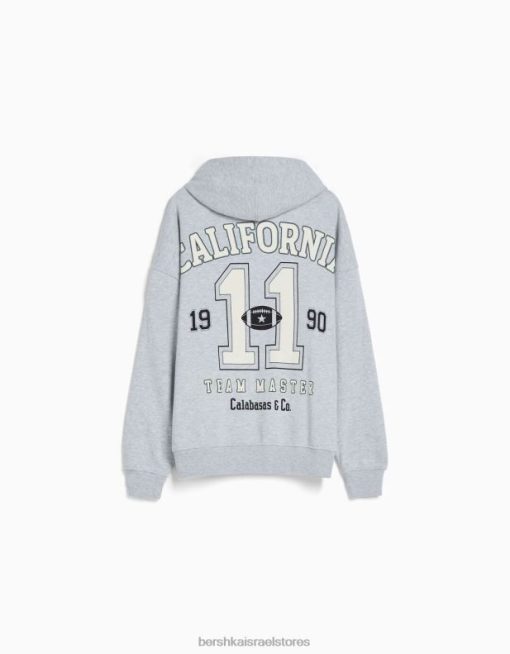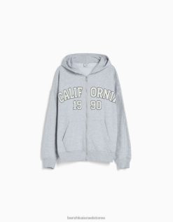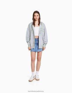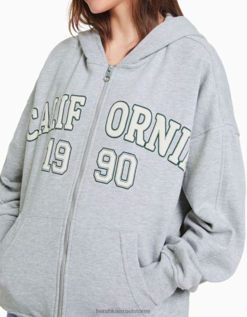 נשים קפוצ’ון מודפס עם רוכסן אוברסייז אפור 2L6JD1241 Bershka הַלבָּשָׁה