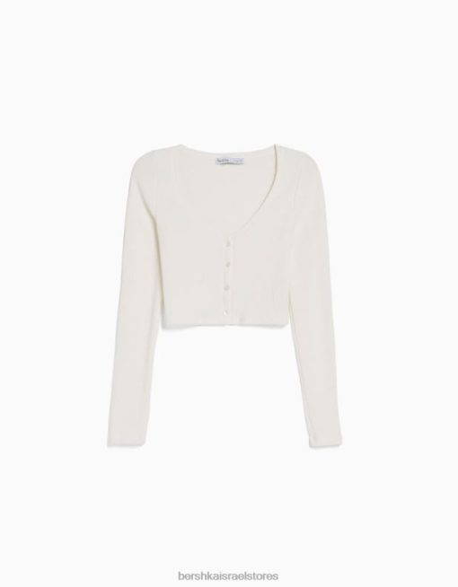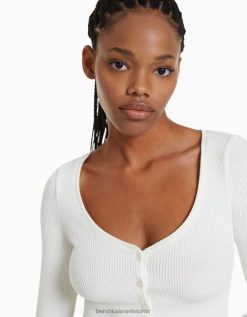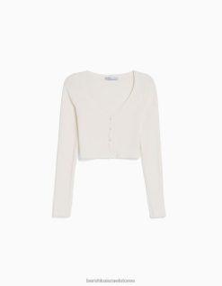 נשים קרדיגן מכופתרת לבן 2L6JD991 Bershka הַלבָּשָׁה