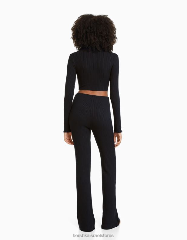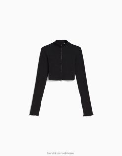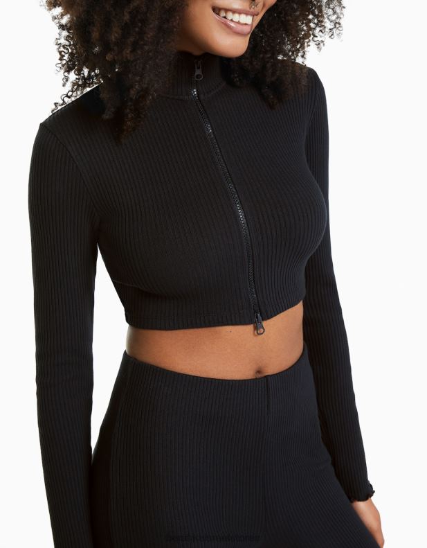 נשים קרדיגן עם צווארון גבוה קצוץ עם רוכסן אפור כהה 2L6JD963 Bershka הַלבָּשָׁה