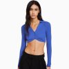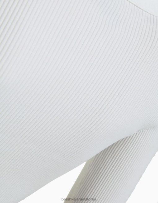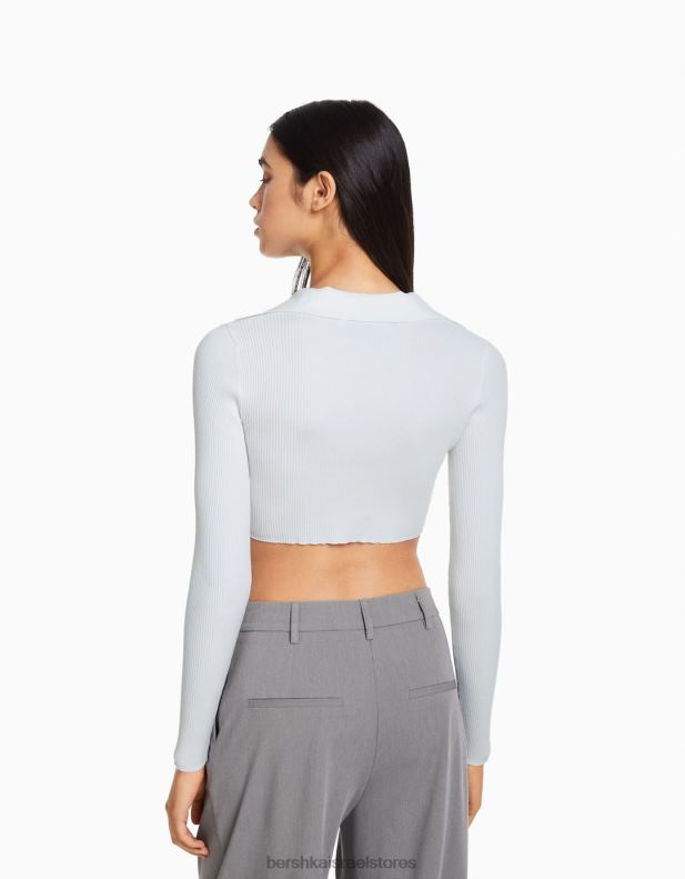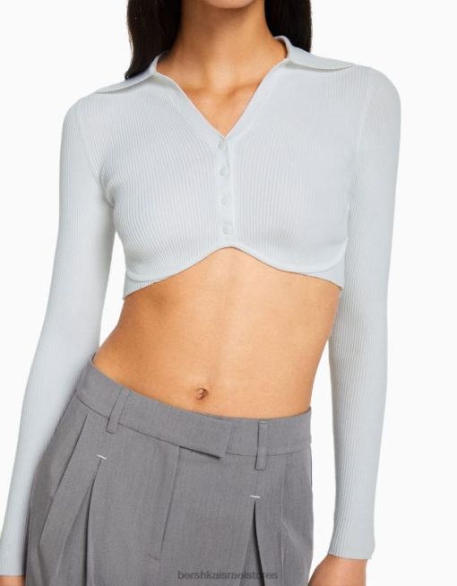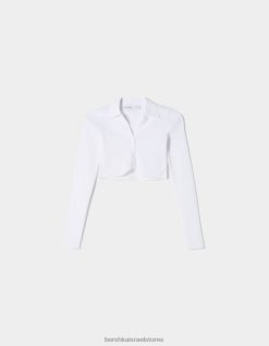 נשים קרדיגן צווארון פולו קצוץ עם כפתורים לבן 2L6JD562 Bershka הַלבָּשָׁה
