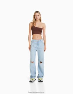 נשים קרופ טופ אסימטרי עם רצועה חום 2L6JD747 Bershka הַלבָּשָׁה