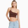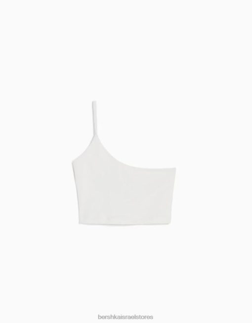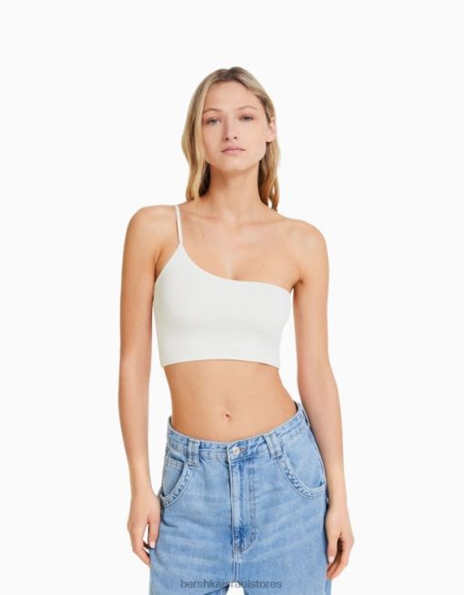 נשים קרופ טופ אסימטרי עם רצועה צבע קרם 2L6JD748 Bershka הַלבָּשָׁה
