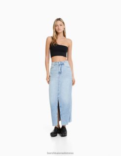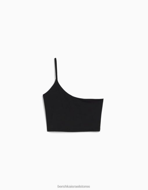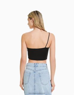 נשים קרופ טופ אסימטרי עם רצועה שָׁחוֹר 2L6JD750 Bershka הַלבָּשָׁה