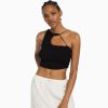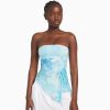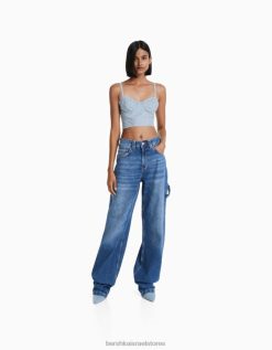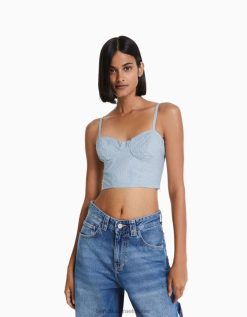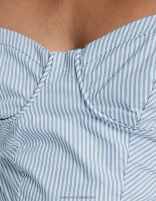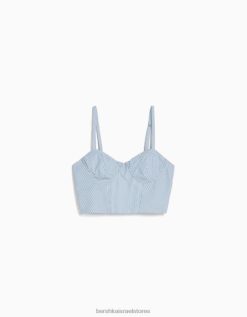 נשים קרופ טופ מודפס עם רצועות פופלין כחול בהיר 2L6JD706 Bershka הַלבָּשָׁה