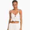 נשים קרופ טופ ניילון עם פקקים אפור 2L6JD792 Bershka הַלבָּשָׁה