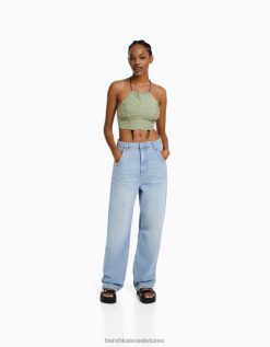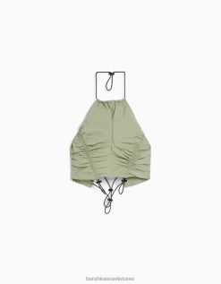 נשים קרופ טופ ניילון עם פקקים חָקִי 2L6JD794 Bershka הַלבָּשָׁה
