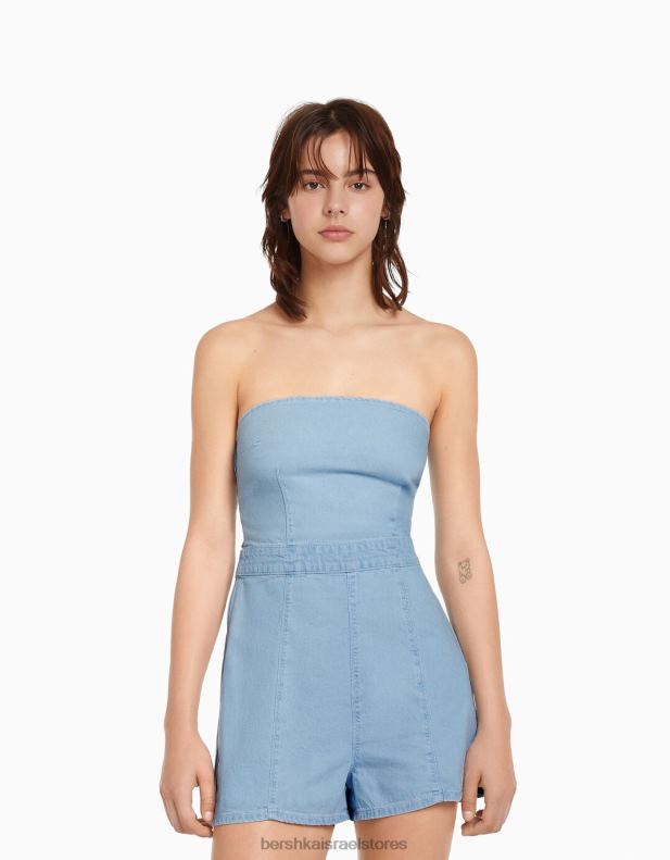 נשים רומפר ג’ינס כחול בהיר 2L6JD4077 Bershka הַלבָּשָׁה