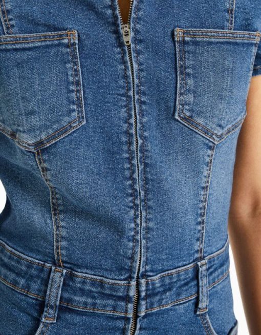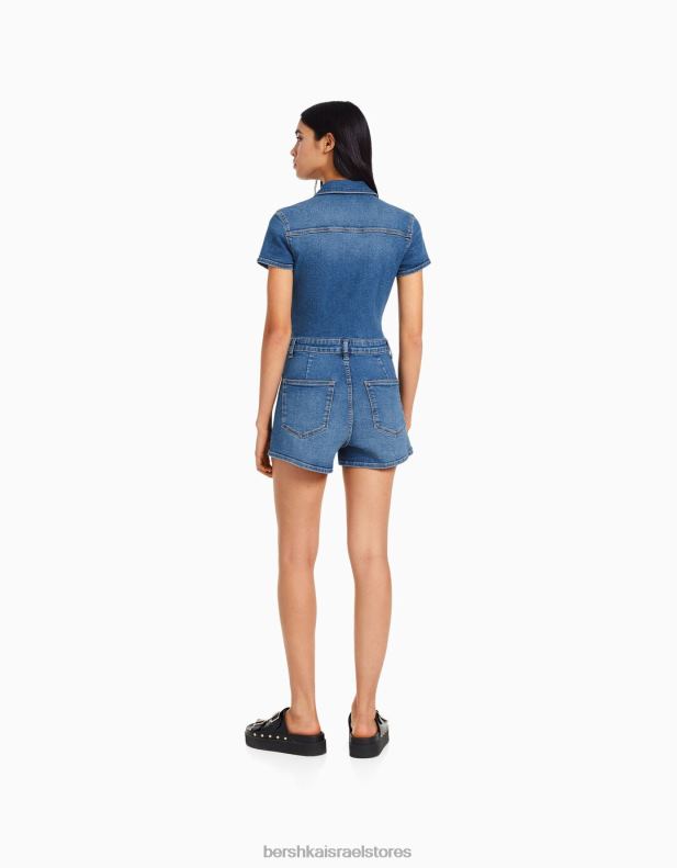נשים רומפר ג’ינס עם רוכסן כחול בהיר 2L6JD29 Bershka הַלבָּשָׁה