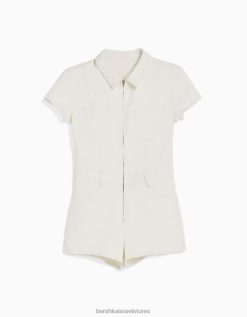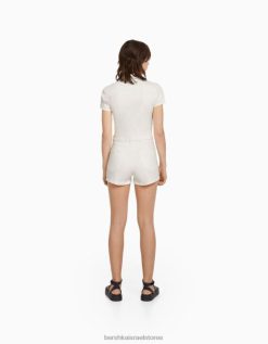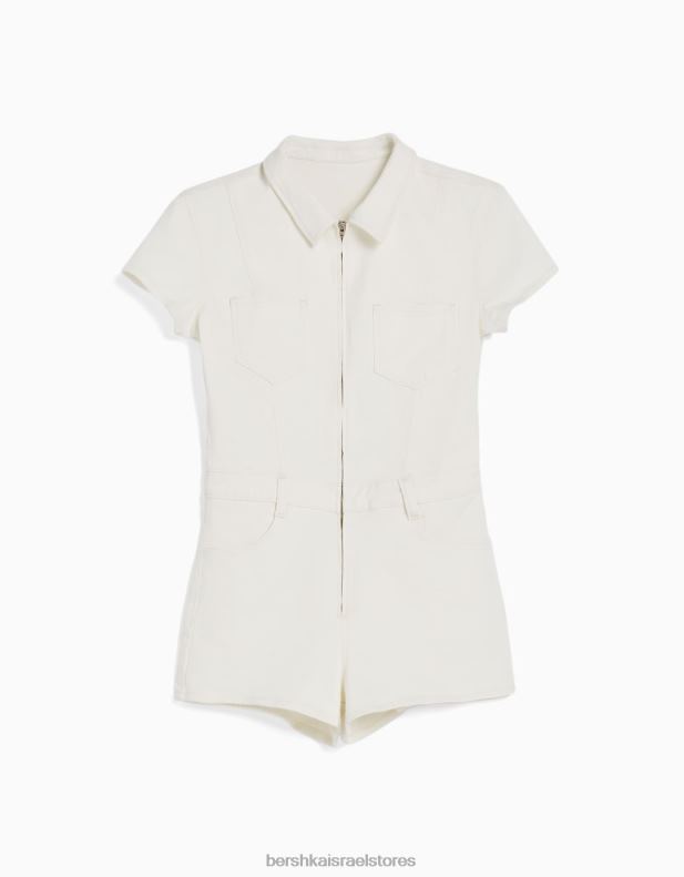 נשים רומפר ג’ינס עם רוכסן קרם 2L6JD4079 Bershka הַלבָּשָׁה