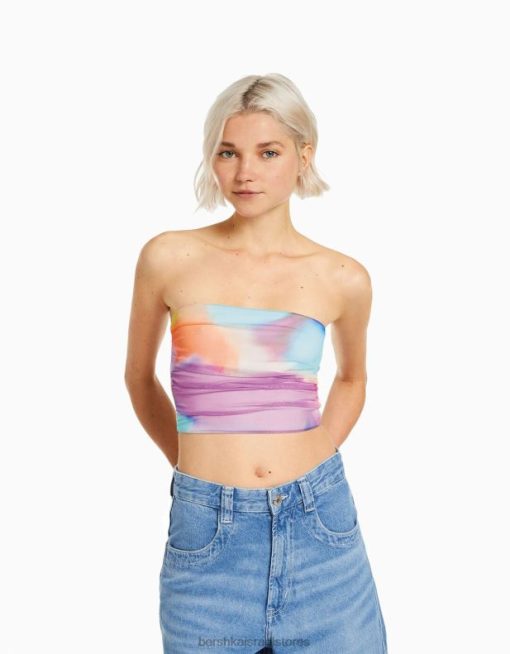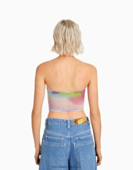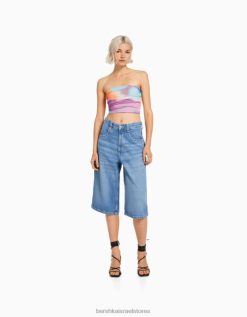 נשים רשת בנדאו קרופ טופ תפוז 2L6JD1899 Bershka הַלבָּשָׁה