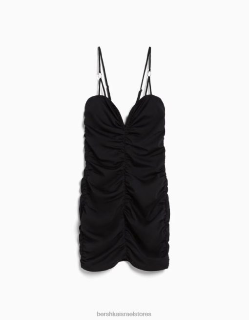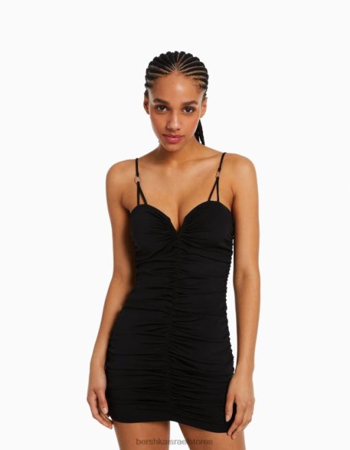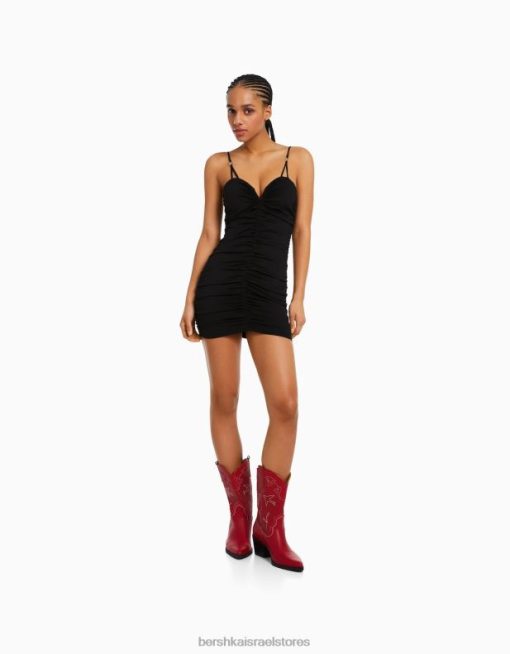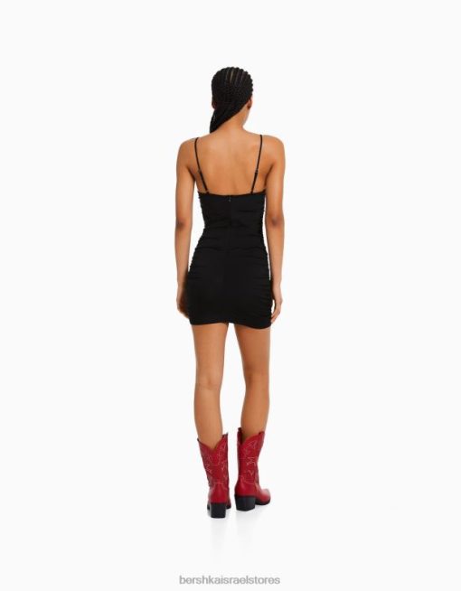 נשים שמלה אסוף עם פירוט צווארון שָׁחוֹר 2L6JD148 Bershka הַלבָּשָׁה