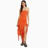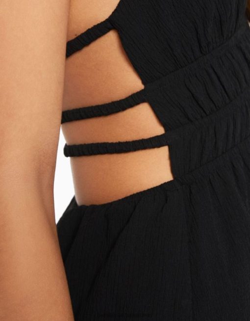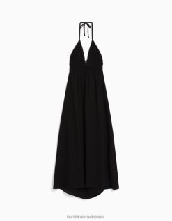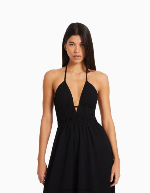 נשים שמלה ארוכה במבולה עם סלסול שָׁחוֹר 2L6JD28 Bershka הַלבָּשָׁה