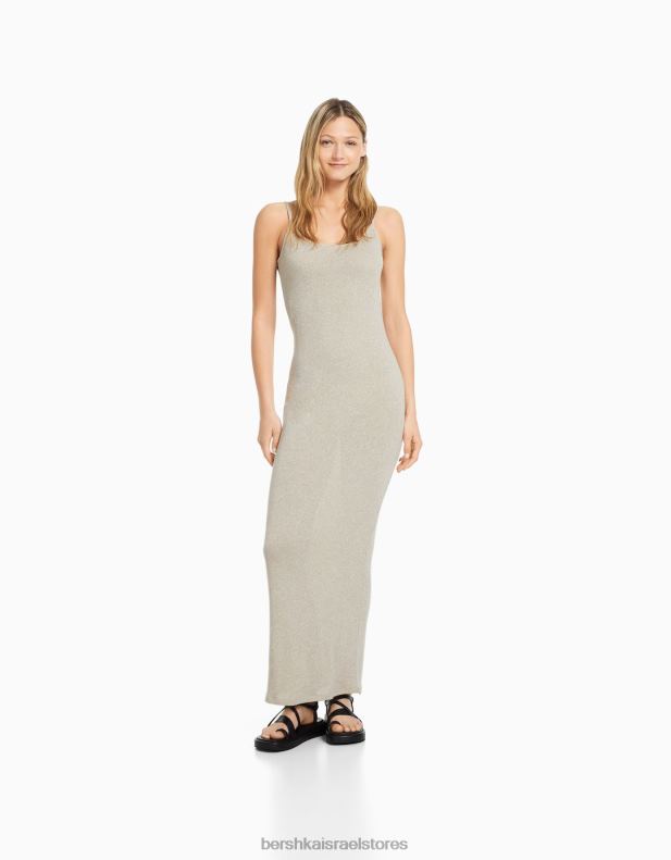 נשים שמלה ארוכה עם אבני חן חוֹל 2L6JD200 Bershka הַלבָּשָׁה