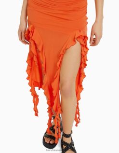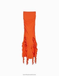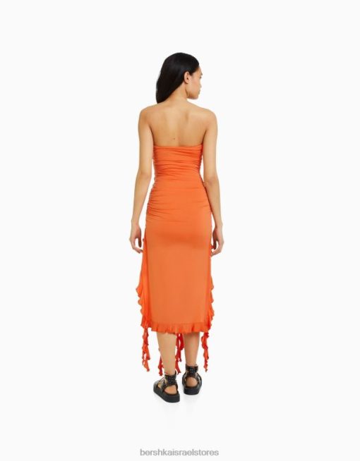 נשים שמלה ארוכה עם סלסולים מחוץ לכתף תפוז 2L6JD31 Bershka הַלבָּשָׁה