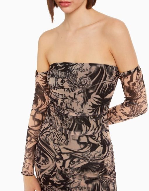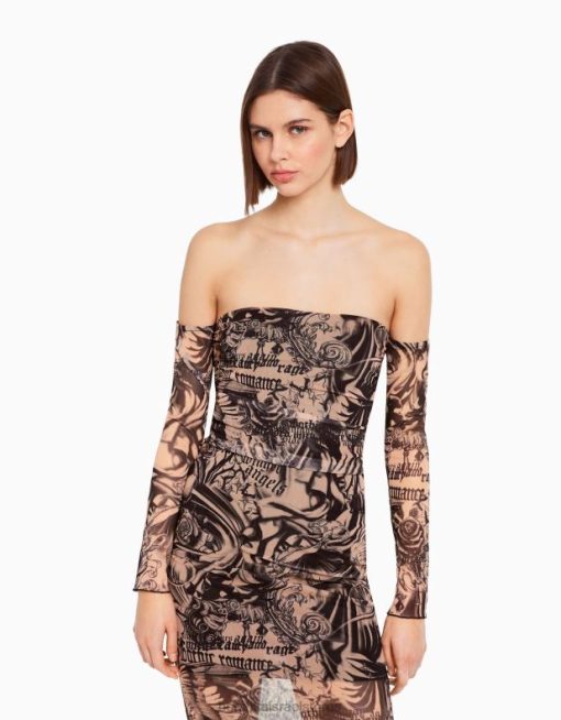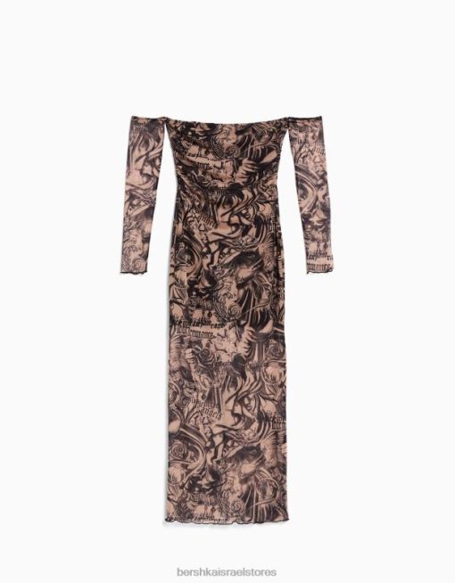נשים שמלה ארוכה עם רצועות טול וָרוֹד 2L6JD245 Bershka הַלבָּשָׁה