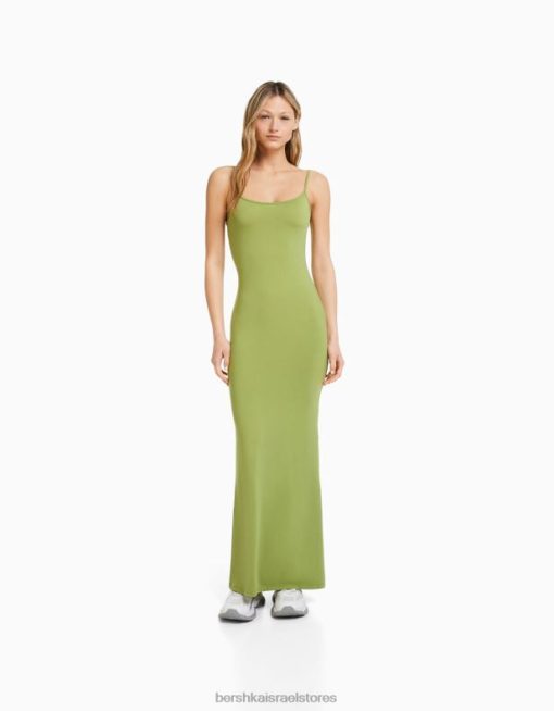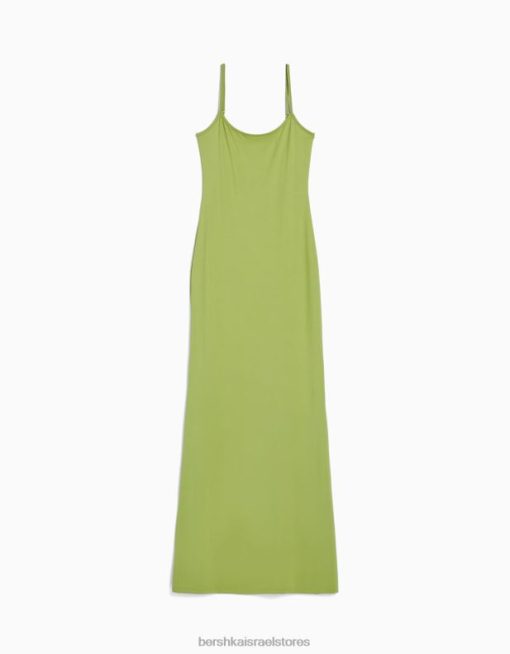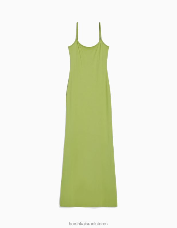 נשים שמלה ארוכה עם רצועות ירוק 2L6JD24 Bershka הַלבָּשָׁה