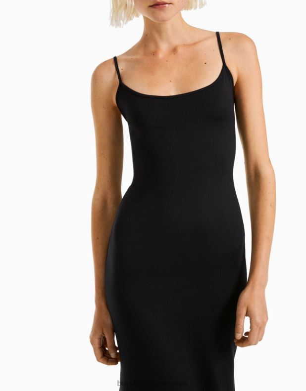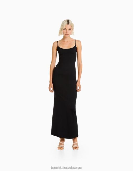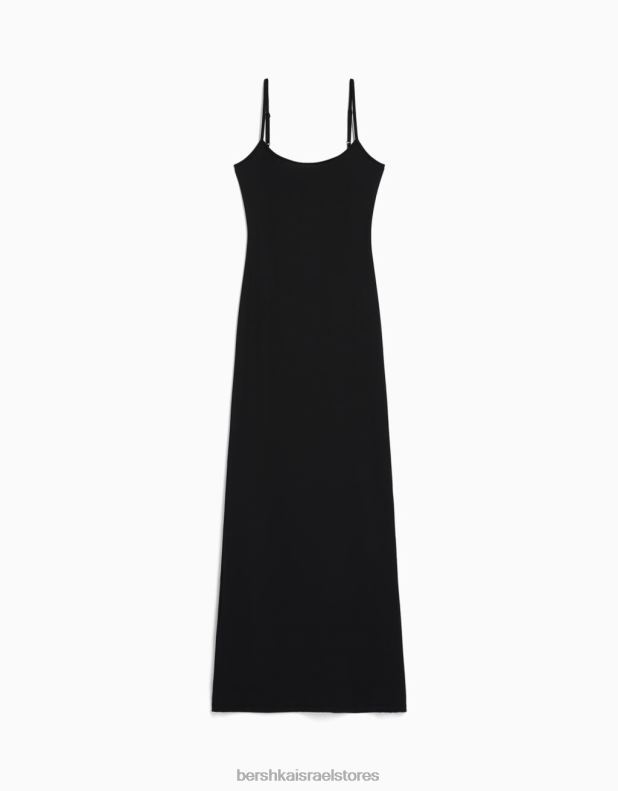 נשים שמלה ארוכה עם רצועות שָׁחוֹר 2L6JD22 Bershka הַלבָּשָׁה