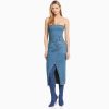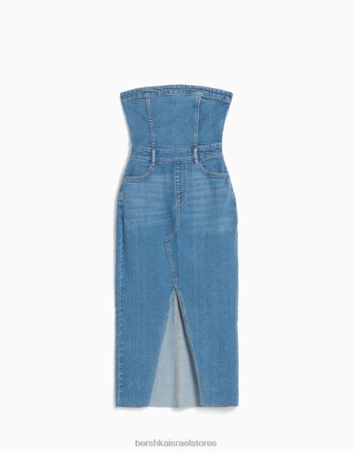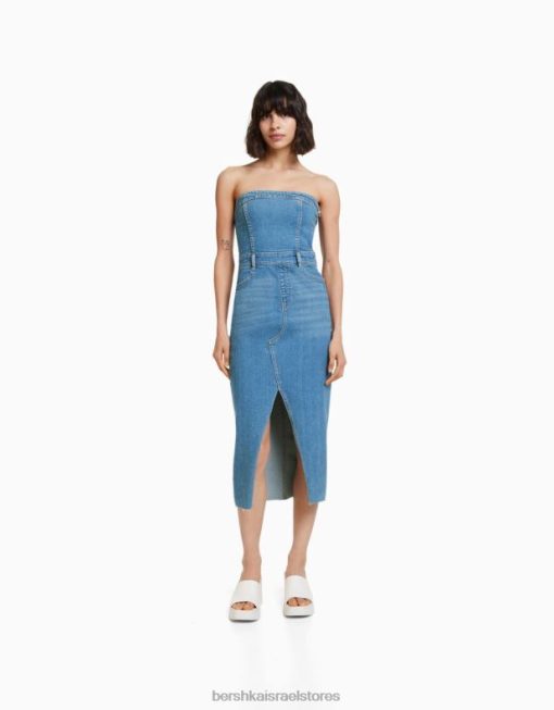 נשים שמלת בנדו ג’ינס ארוכה כחול בהיר 2L6JD1960 Bershka הַלבָּשָׁה
