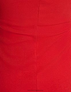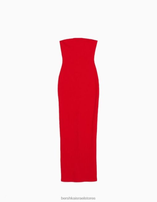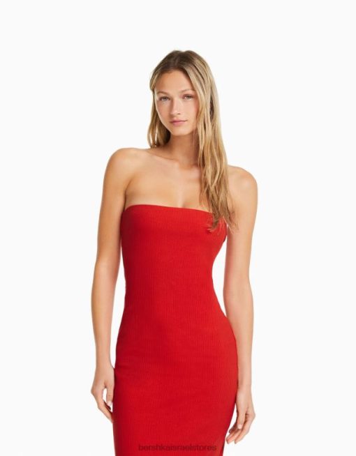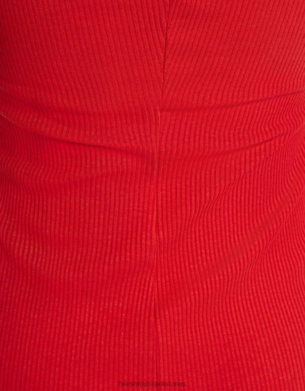 נשים שמלת בנדו מצולעת ארוכה אָדוֹם 2L6JD49 Bershka הַלבָּשָׁה