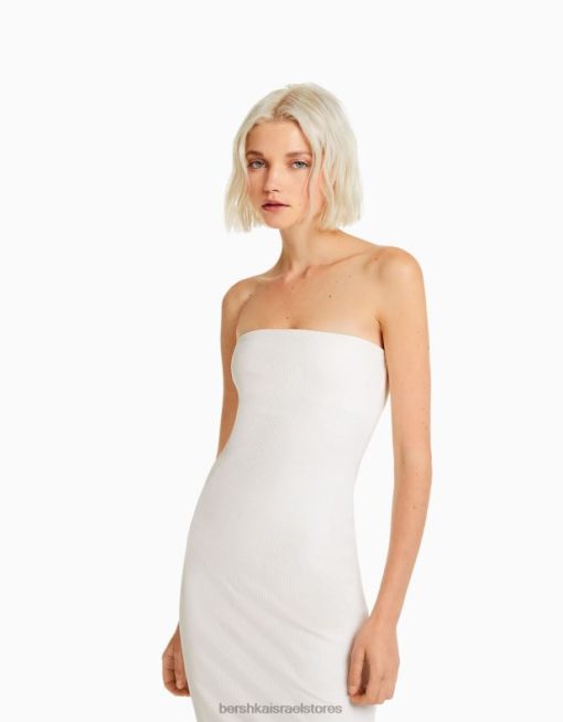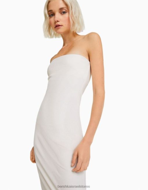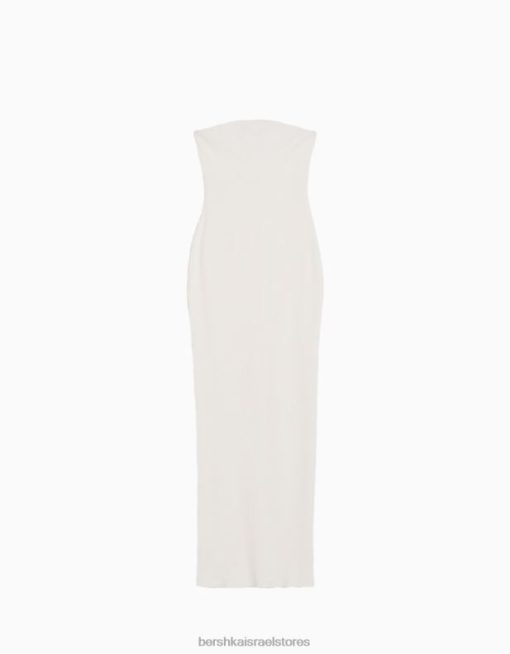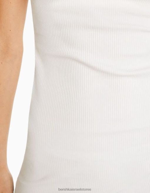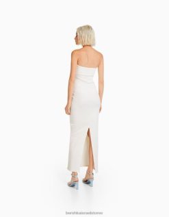 נשים שמלת בנדו מצולעת ארוכה צבע קרם 2L6JD1829 Bershka הַלבָּשָׁה