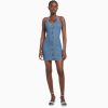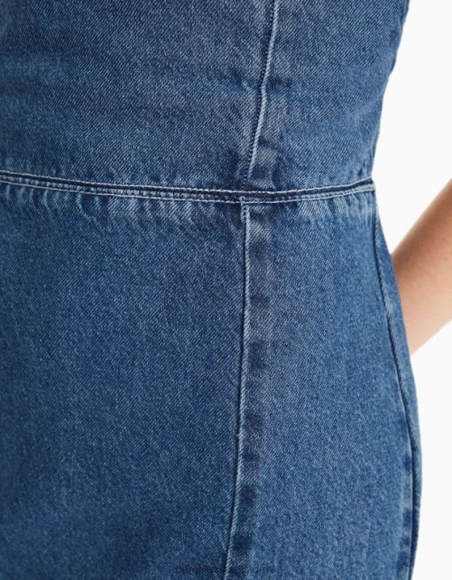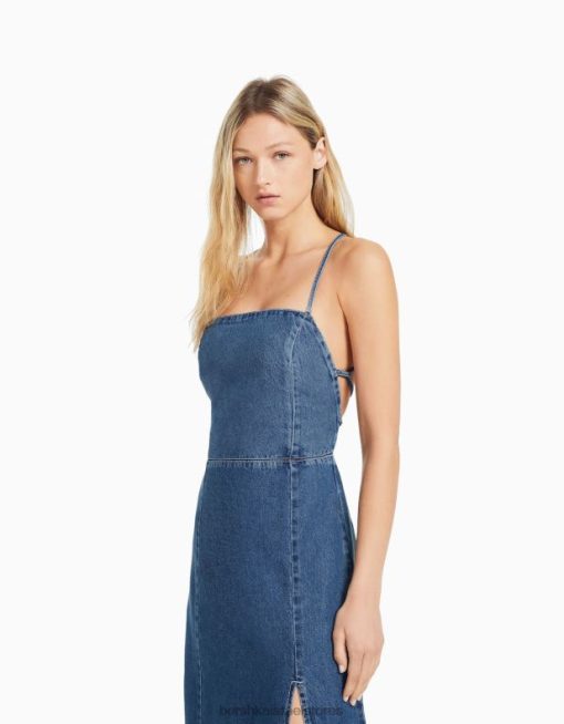 נשים שמלת ג’ינס ארוכה עם גב פתוח כחול בהיר 2L6JD187 Bershka הַלבָּשָׁה