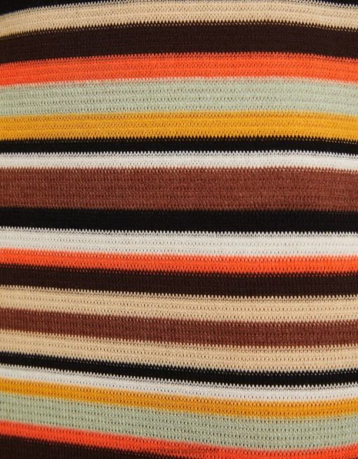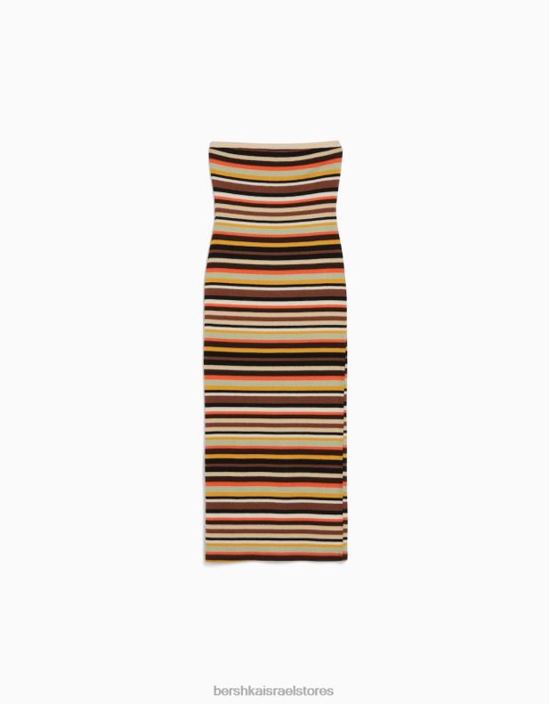 נשים שמלת מידי בנדו פסים חום 2L6JD183 Bershka הַלבָּשָׁה
