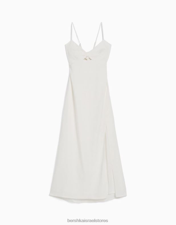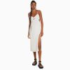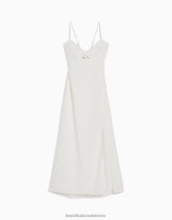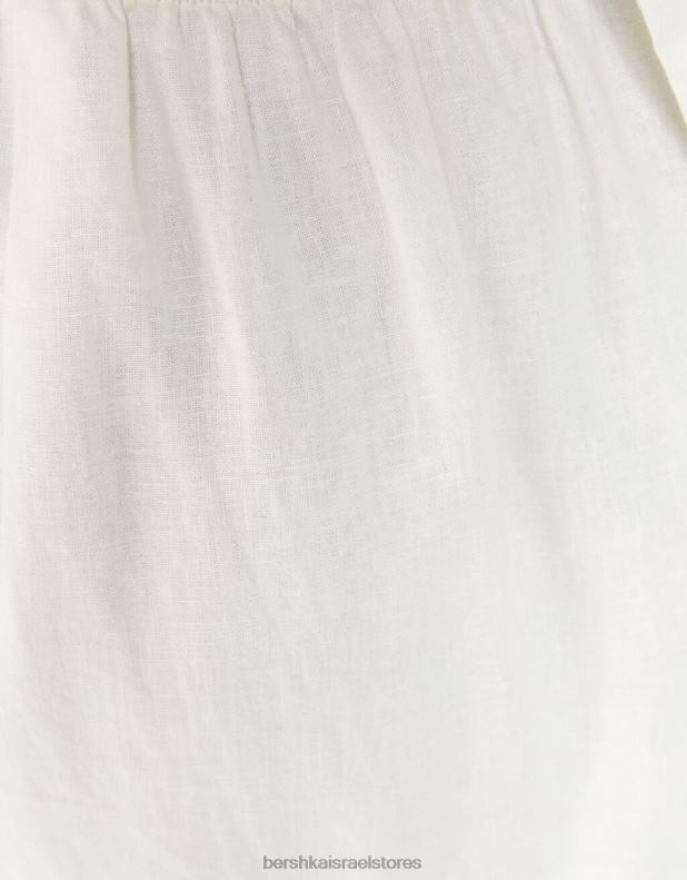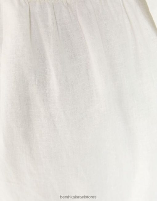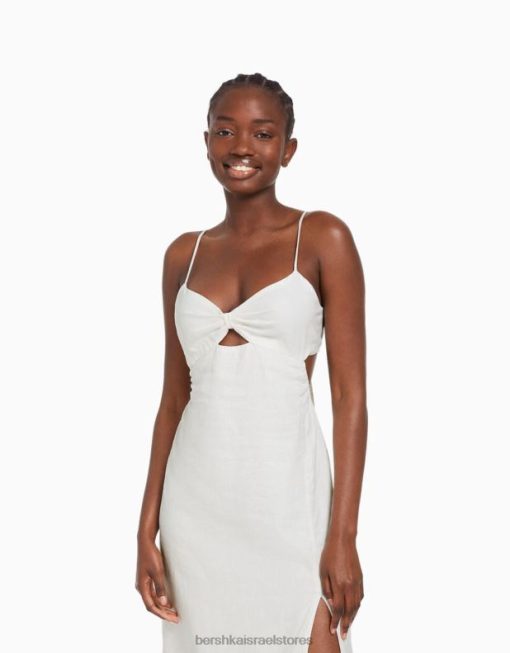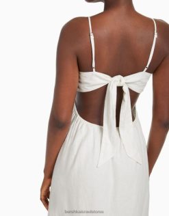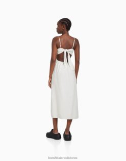 נשים שמלת מידי בתערובת פשתן עם רצועות לבן 2L6JD76 Bershka הַלבָּשָׁה