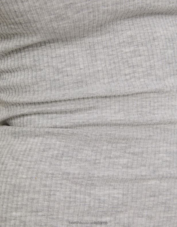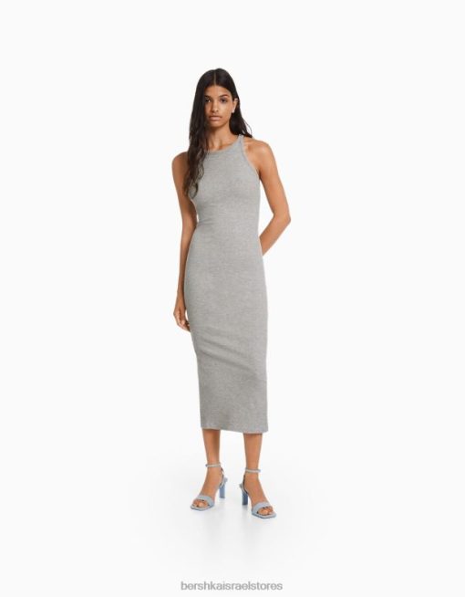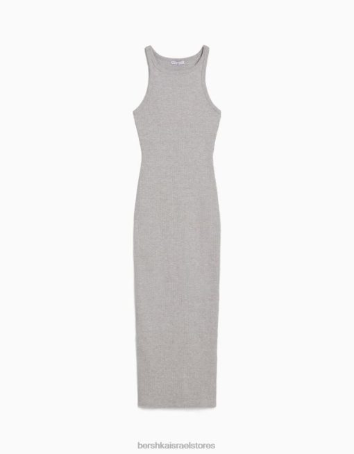נשים שמלת מידי ללא שרוולים עם צלעות אפור 2L6JD3 Bershka הַלבָּשָׁה