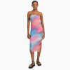 נשים שמלת מידי מחוץ לכתף עם הדפס כְּחוֹל 2L6JD93 Bershka הַלבָּשָׁה