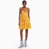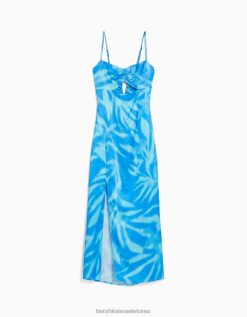 נשים שמלת מידי סאטן מודפסת עם רצועות צִבעוֹנִי 2L6JD159 Bershka הַלבָּשָׁה