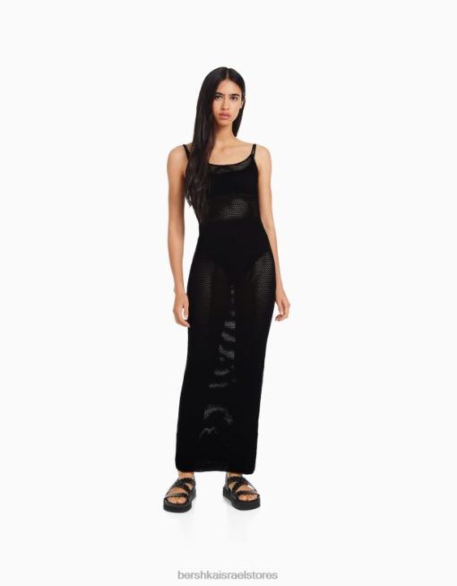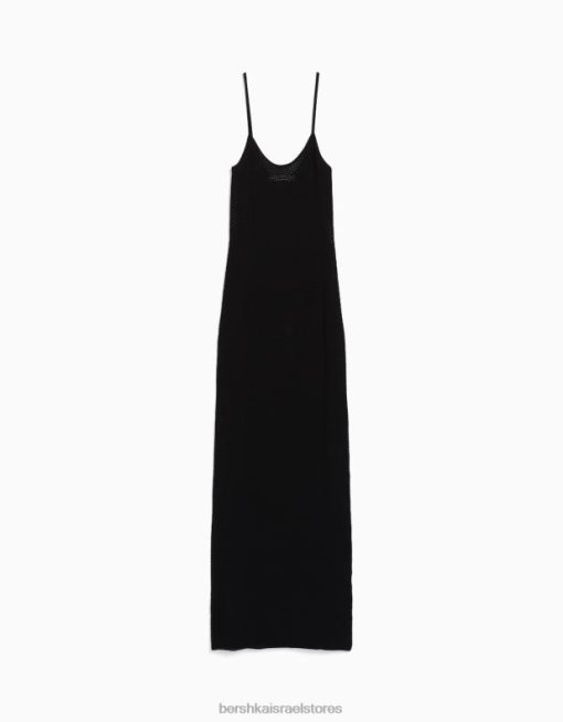 נשים שמלת מידי סריג רצועות שָׁחוֹר 2L6JD171 Bershka הַלבָּשָׁה