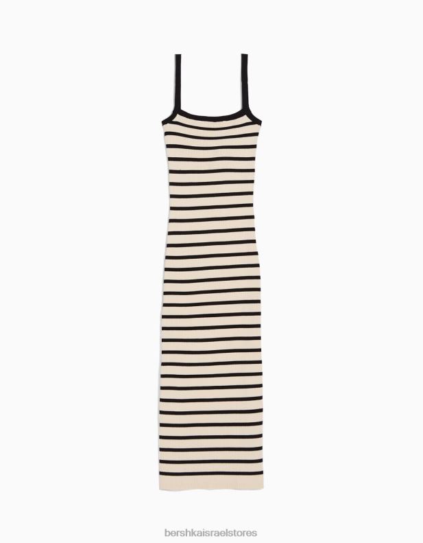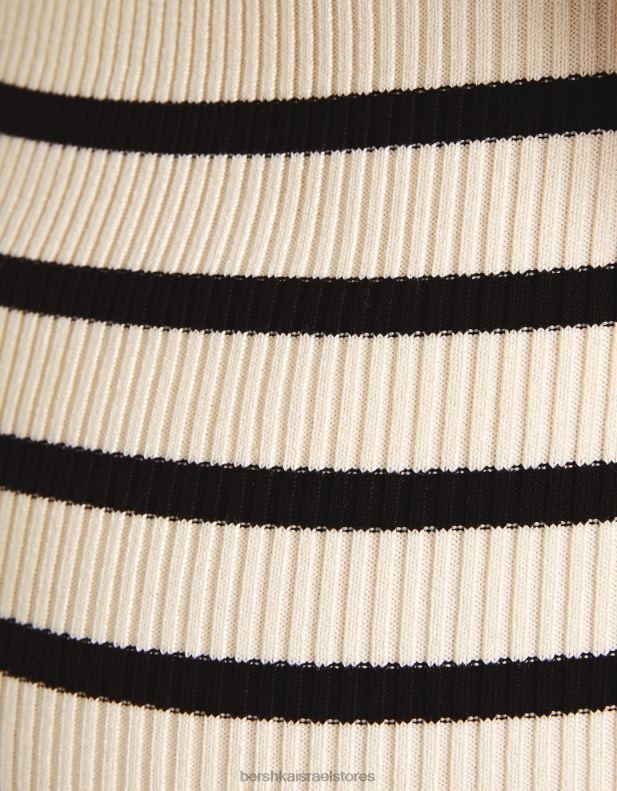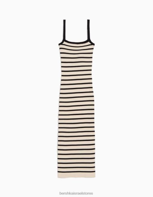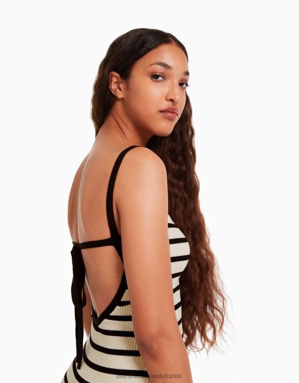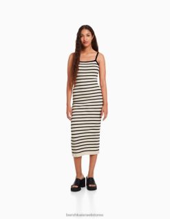 נשים שמלת מידי פסים עם רצועות שָׁחוֹר 2L6JD212 Bershka הַלבָּשָׁה