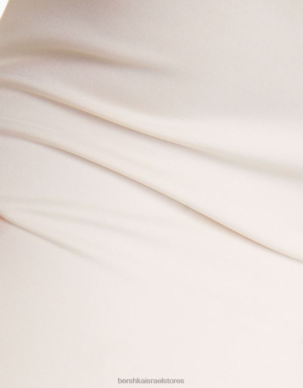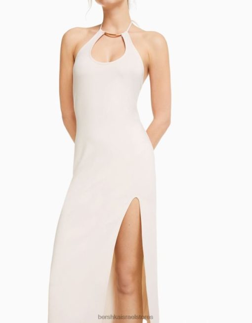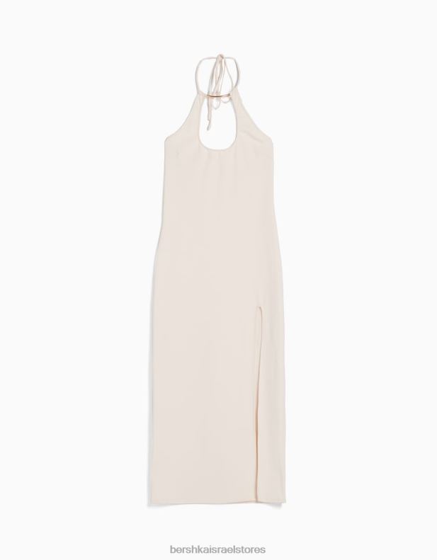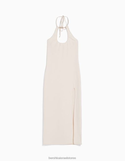 נשים שמלת מידי צמודה עם פרטי צווארון צבע קרם 2L6JD128 Bershka הַלבָּשָׁה